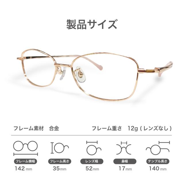 度数+0.25刻みで選べる!遠近両用メガネ 老眼鏡 遠くも見える メガネ ブルーライトカット シニアグラス おしゃれ レディース メンズ ウェリントン ゴールド オーダーメイド返品交換不可66012-enkin