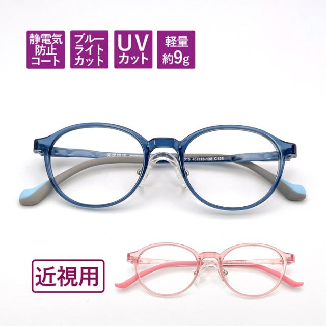 度付きメガネ 度あり 度入り 近視用 近眼 キッズ 子供 ジュニア ブルーライトカット おしゃれ PCメガネ ブルー ピンク 2015-kinsi