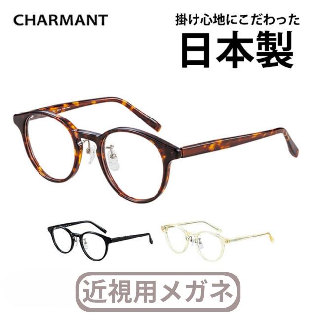 日本製 近視メガネ シャルマン 鯖江市 日本製 レディース おしゃれ メンズ 近視用 度入り ブルーライトカット ブラック クリア ボストン ay45002-kinsi
