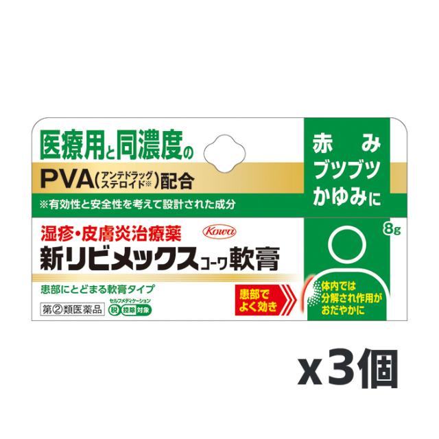 【ゆうパケット配送対象】【第(2)類医薬品】興和 新リビメックス軟膏 8gx3個【SM】(赤み かゆみに 医療用と同濃度 PVA配合)(ポスト投函