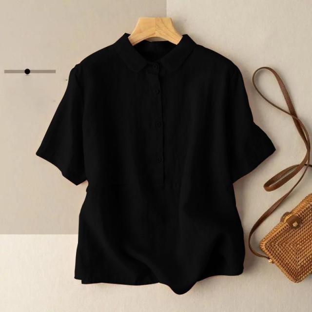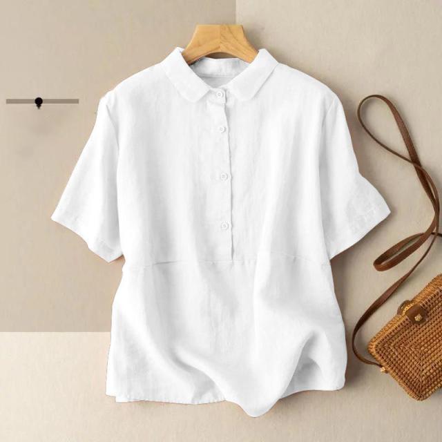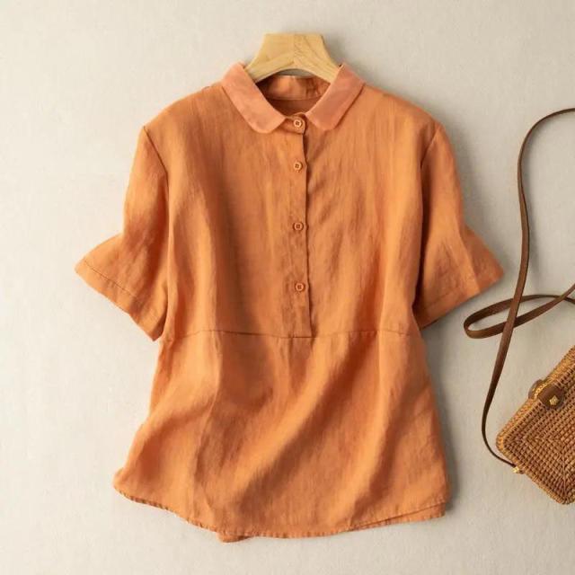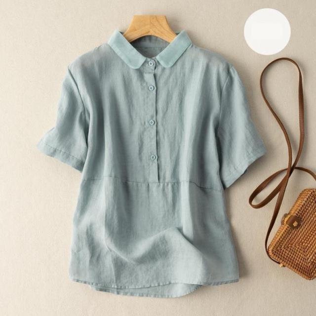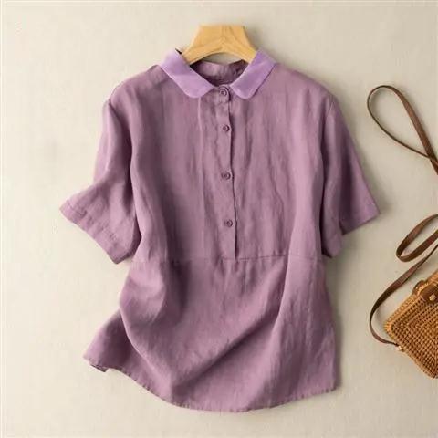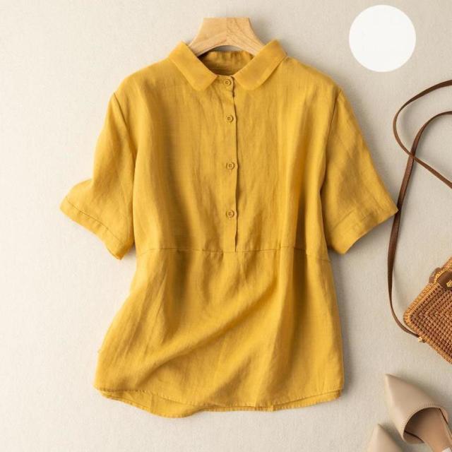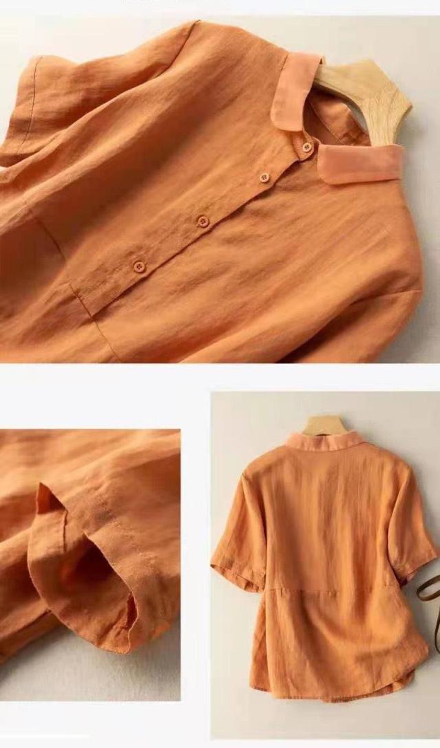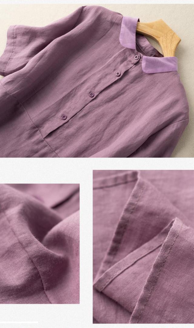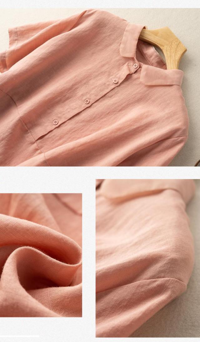 送料無料 綿麻シャツ シャツ 綿麻 ブラウス トップス レディース 五分袖 ゆったり 薄手 無地 体型カバー 夏服 おしゃれ カジュアル 着痩せ 女性用