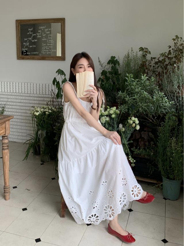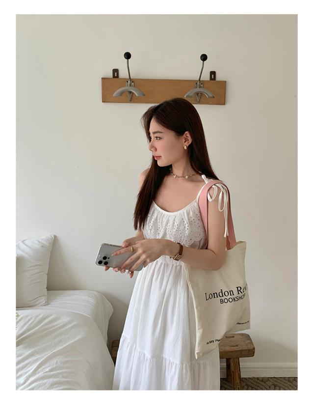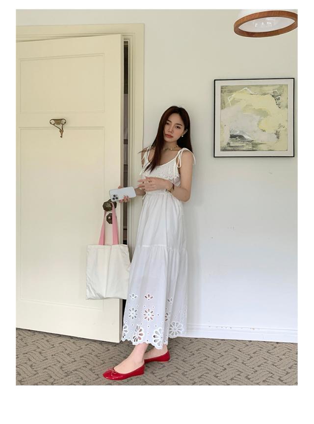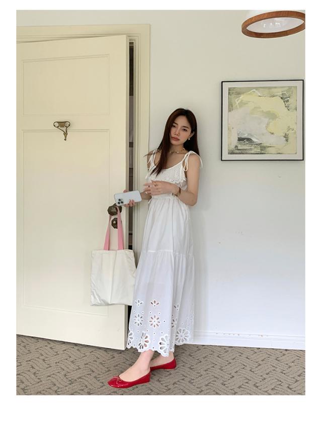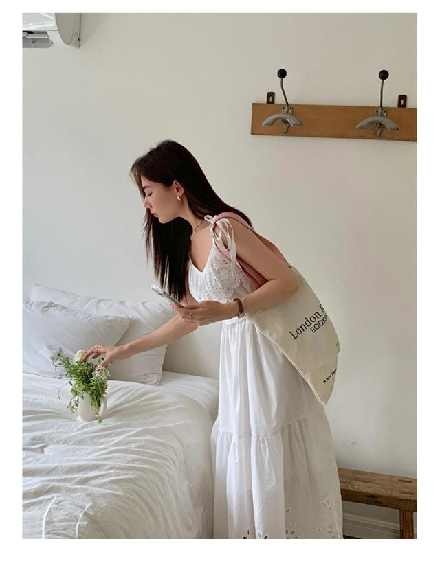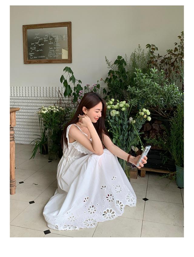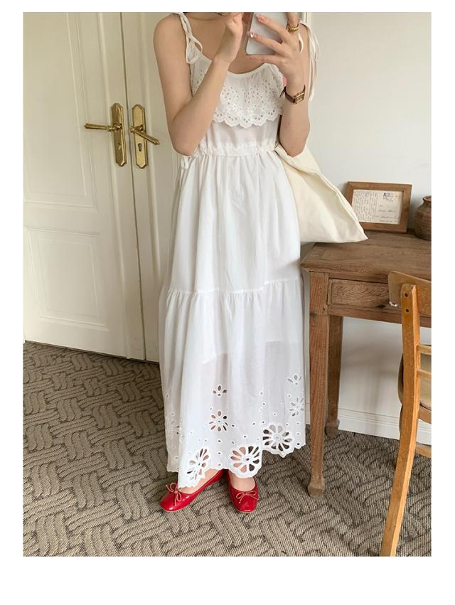 白ワンピース リゾートワンピース レディース 夏 キャミソールドレス ロング丈 aライン 花柄 おしゃれ ゆったり レトロ 森ガール