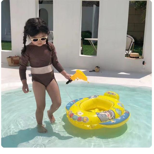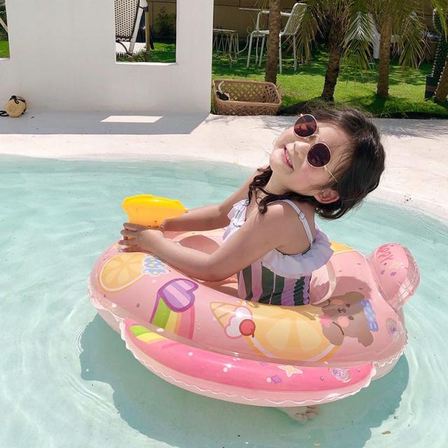 浮き輪 子供 ベビー うきわ 水泳リング 水鉄砲付き 噴水おもちゃ 足入れ 座付き 3歳~6歳向け 幼児 キッズ 浮き具 強い浮力 可愛い 夏 水泳 海 プール