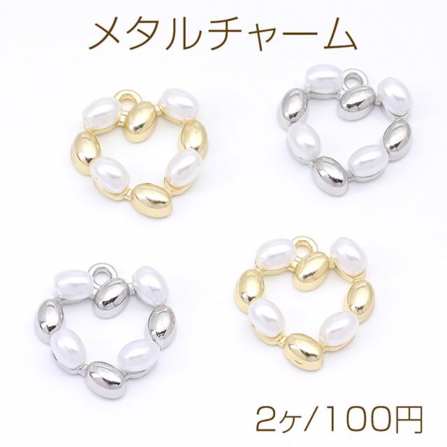 メタルチャーム パール付きチャーム ハート型 1カン 17×16mm(2ヶ)