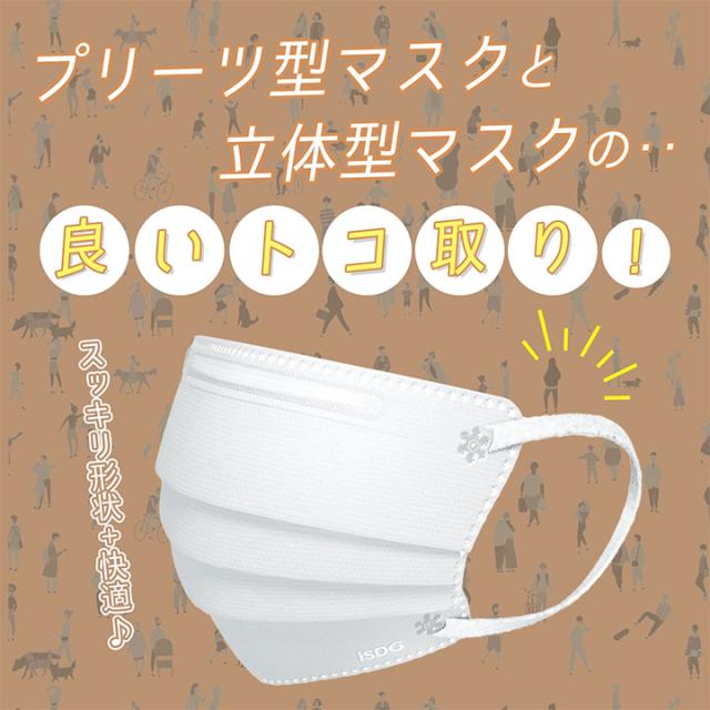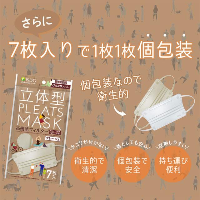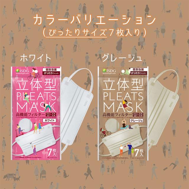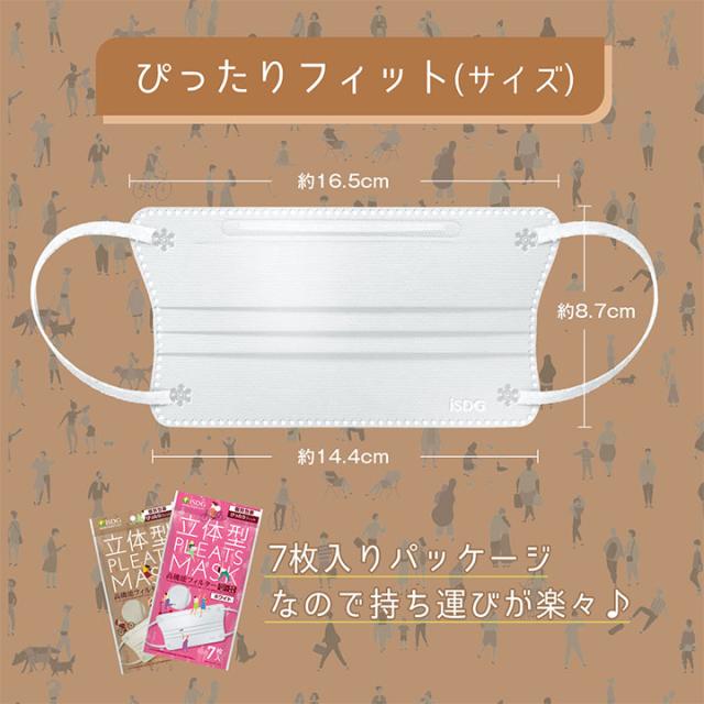 立体型プリーツマスク ぴったりフィット 7枚入 / iSDG マスク 立体型マスク 不織布 立体 カラーマスク ぴったり マスク おしゃれマスク 小顔マスク