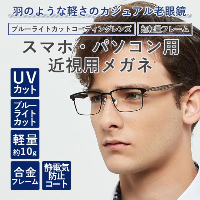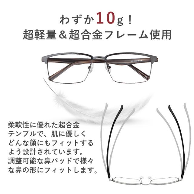 度付きメガネ 度あり 度入り 近視用 近眼 おしゃれ メンズ ブルーライトカット PCメガネ 1822-kinsi