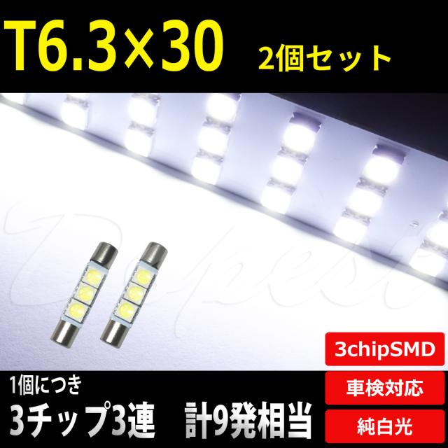 T6.3×30mm LED バルブ SMD3連3チップ バニティ バイザー 2個 汎用 ライト 球 バニティー ミラー サンシェイド
