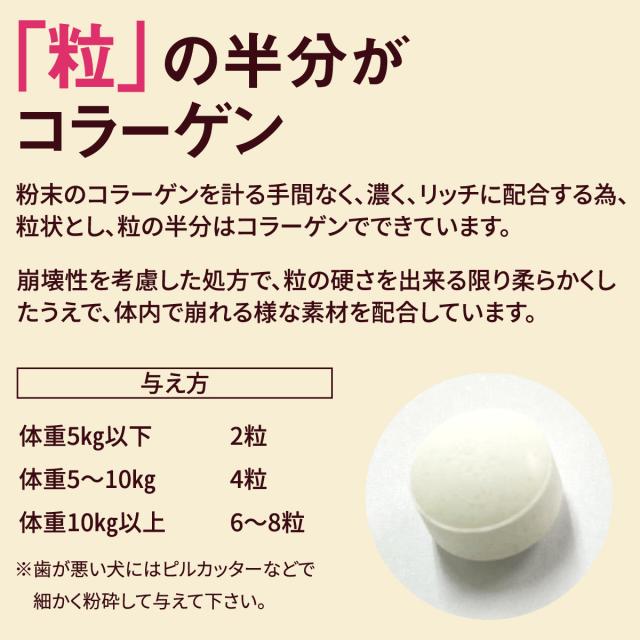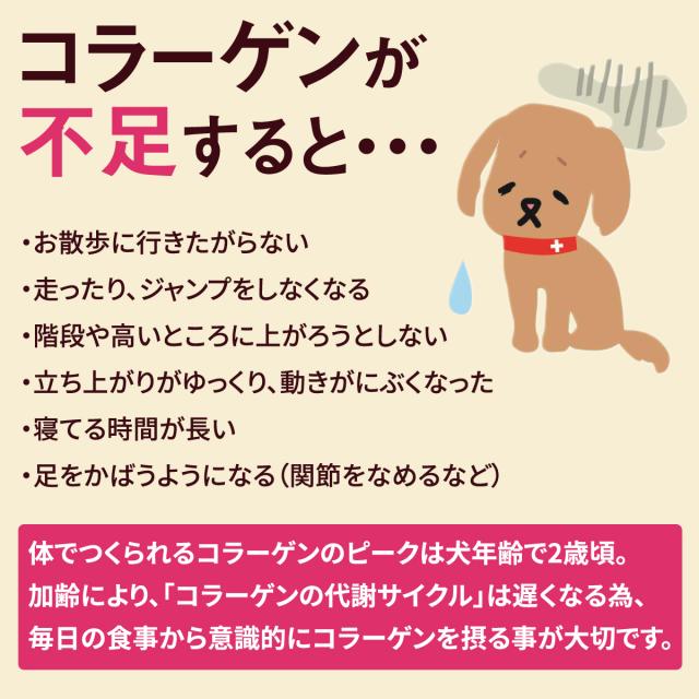 また、コラーゲンはタンパク質なのでタンパク質の摂取制限を受けている場合には獣医師にご相談ください。