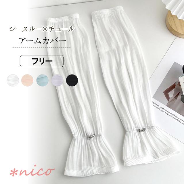 アームカバー (L-AMVO-03)[★メール便OK]【メール便送料無料】【 フリーサイズ アームスリーブ レディース 涼しい 透け感 シアー 可愛い トレンド フリルトリム 紫外線カット 】