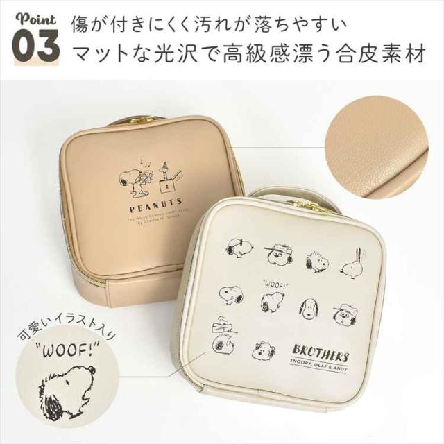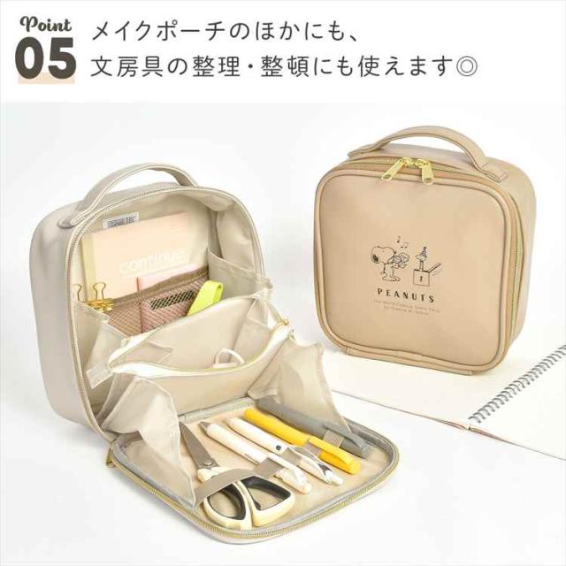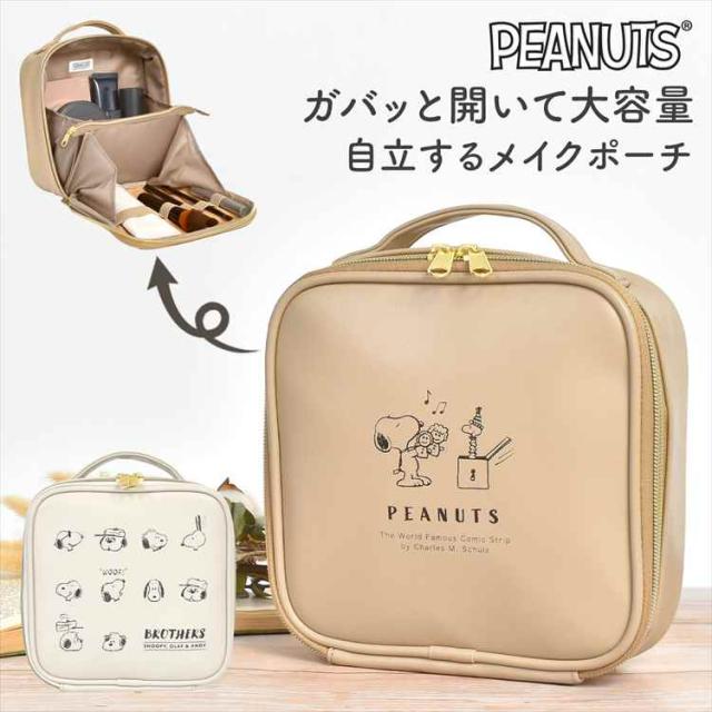 メイクポーチ 自立 スヌーピー SNOOPY キャラクター 大容量 収納 化粧ポーチ コスメポーチ 小物入れ バニティポーチ 縦型 大きめ 機能的 仕切り 持ち運び 化粧品 コスメボックス おしゃれ かわいい ベージュ アイボリー 大人 高校生 レディース PEANUTS 誕生日 プレゼント