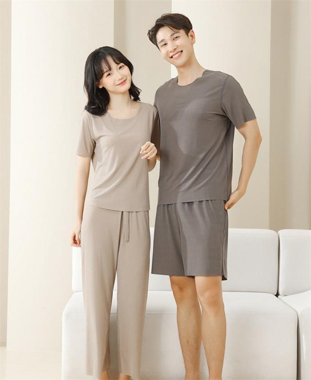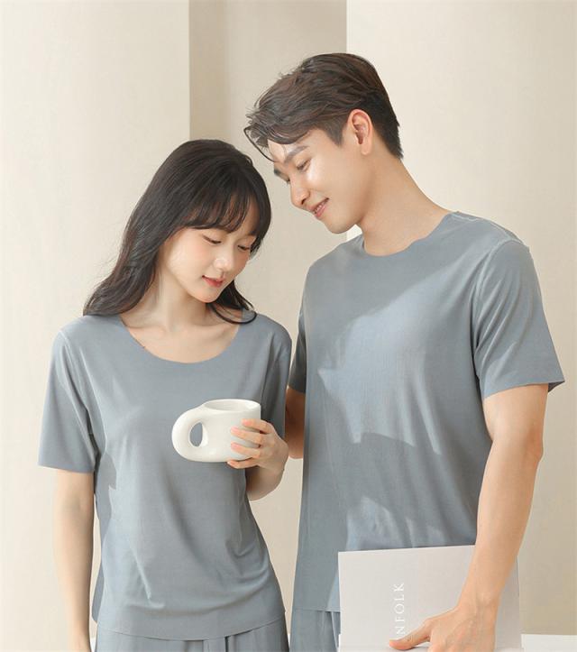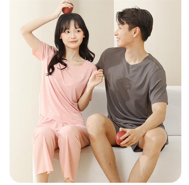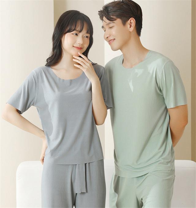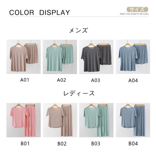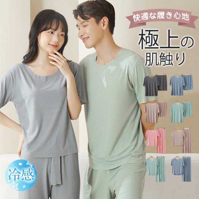 パジャマ カップルペアルック 接触冷感 夏 ルームウェア パジャマ半袖 リブ お揃いレディースメンズ ギフト プレゼント 部屋着