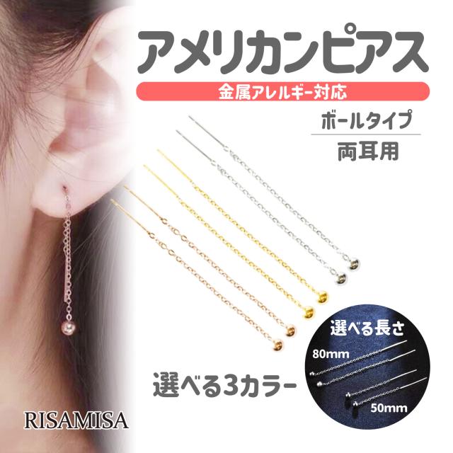 アメリカンピアス 金属アレルギー 対応 両耳 チェーンピアス ボール ロングピアス チェーン 揺れる サージカルステンレス