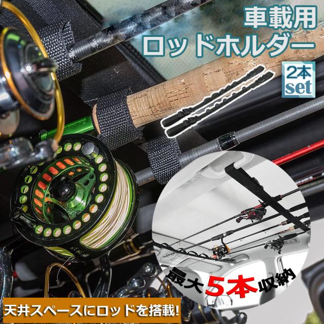 ロッドホルダー 車載用 釣り竿収納 2本セット 5本収納可能 釣り道具 釣り用ロッドベルト 釣り竿ホルダー ロッドキャリー ロッドキーパーベルト ロッドスタンド マジック式車内固定 マルチベルト 長さ調節可能 釣り 釣り道具 車用収納