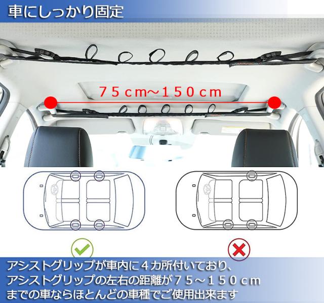 【注意事項】ご購入の前に車のアシストグリップ(手すり)間の幅が75cm〜150cmであることを確認してください。車種によ
