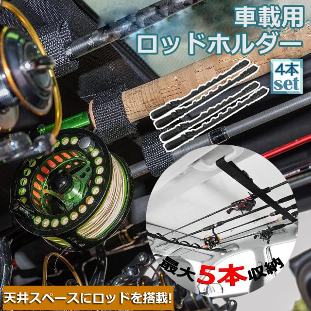 ロッドホルダー 車載用 釣り竿収納 4本セット 5本収納可能 釣り道具 釣り用ロッドベルト 釣り竿ホルダー ロッドキャリー ロッドキーパーベルト ロッドスタンド マジック式車内固定 マルチベルト 長さ調節可能 釣り 釣り道具 車用収納