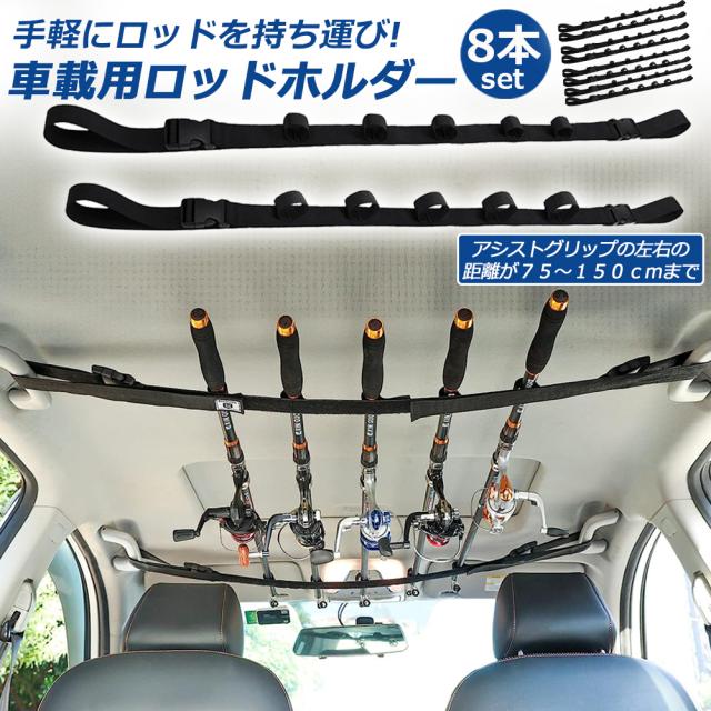 ロッドホルダー 車載用 釣り竿収納 8本セット 5本収納可能 釣り道具 釣り用ロッドベルト 釣り竿ホルダー ロッドキャリー ロッドキーパーベルト ロッドスタンド マジック式車内固定 マルチベルト 長さ調節可能 釣り 釣り道具 車用収納