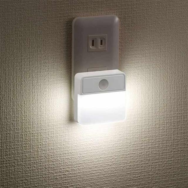 ● コンセントに差し込むだけの簡単設置。● LEDを上向きにすれば周囲を明るく、下向きにすればフットライトに。● 明るさ約45ルーメン(最大)。● 周囲が暗くなると自動点灯、明るくなると自動消灯。● 周囲の暗さに応じて、光の強さを自動調整します。。● 耐トラッキングPSE新基準(平成27年1月16日改正)準拠。● LEDを使用しているので長寿命、省電力です。● 30日間連続点灯でも電気代約10円(1kWh単価27円で計算)。● 薄型ボディー。● 点灯色は昼白色LED