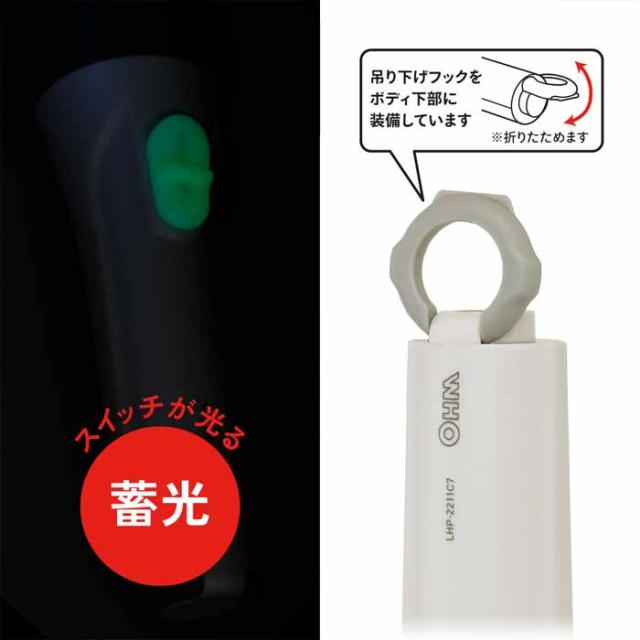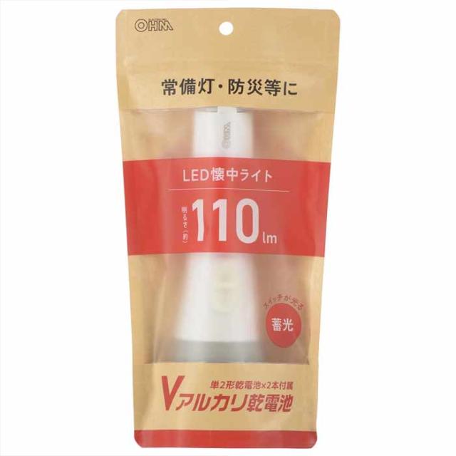 乾電池付LEDライト 110lm 単2形×2本付属 連続使用81時間 蓄光スイッチ OHM LHP-2211C7