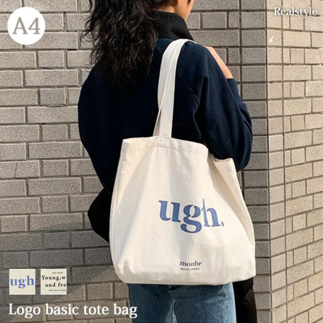 ファスナー付き ベーシック 英字 ロゴ トートバッグ レディース メンズ バッグ 肩掛け カバン プリント キャンバス 帆布 スクエア a4 マチ 大きめ おしゃれ かわいい 韓国 シンプル 通勤 通学 大学生