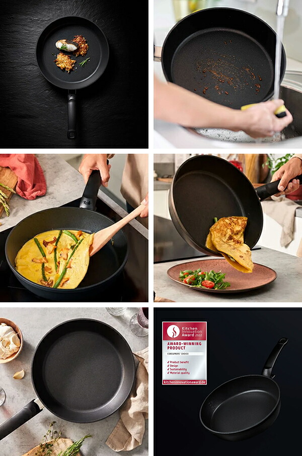 圧倒的なノンスティックパフォーマンス。 蓮の葉の水滴をはじくロータス効果にインスピレーションを得て開発されたレヴィタルコーティング。優れたノンスティック効果によりノンオイル調理*が可能。ヘルシーな調理に最適。 *レヴィタル+ コーティングは優れたノンスティック効果を誇りますが、食材や調理により、オイルの有無・量はご調整ください。 【特徴】 ・レヴィタル+ コーティング:表面のキズがさらに目立ちにくく、輝きのあるタフなコーティング。非常に耐久性に優れ、ノンスティック効果が長持ち。 ・クックスターベース:IHを含む全ての熱源に対応。改良により熱効率がさらにアップ。理想的な熱吸収、熱分散、熱保持により中火以下でも最適なパフォーマンスを発揮します。 ・セーフティーハンドル:人間工学に基づき開発されたセーフティーハンドル。滑り止めと熱よけのフィンガープロテクト。ループ付きの吊り下げ可能なデザインで収納にも便利。 ・PFOA/PFOSフリーだから安心:人体に有害な影響を与えると言われているPFOA/PFOSを一切使用していません。 |