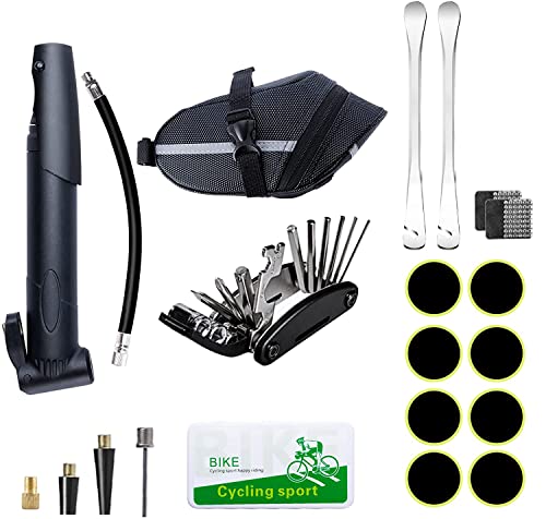 ・超充実の自転車パンク修理キット:パンク修理キット、空気入れセット、マルチツール、自転車用サドルバッグが含まれています。自転車修理キットはやはり常備しやすくなっています。いつでも対応できるので、ですよ。