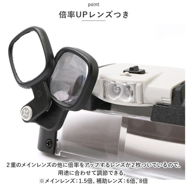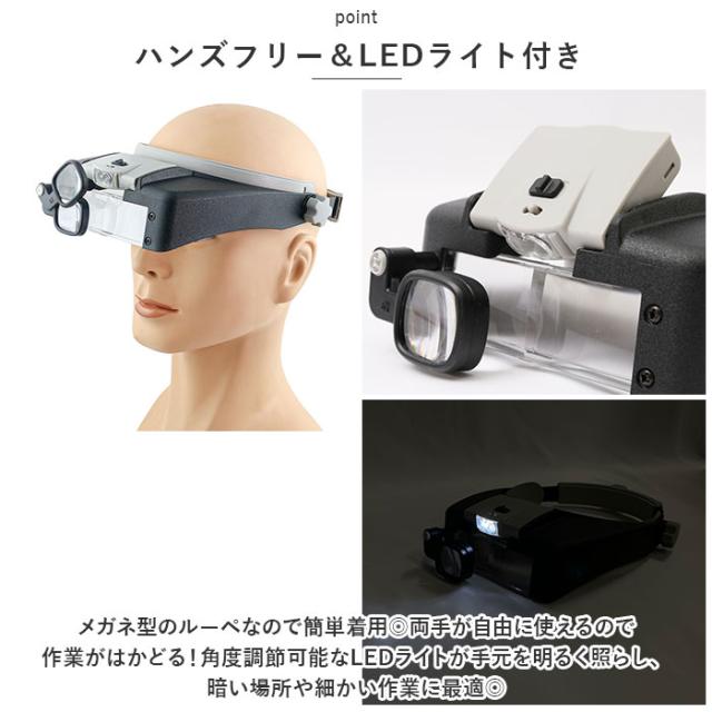 拡大鏡 ルーペ 通販 ライト付き ヘッドルーペ 虫めがね 虫眼鏡 LEDライト付き シニアグラス 耳かき 爪切り 精密作業 老眼 日用品 雑貨 敬老の日 贈り物 ギフト