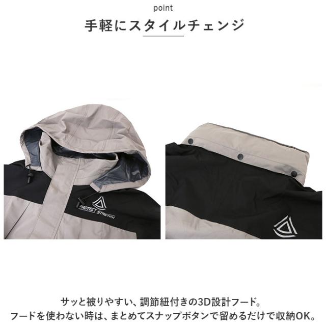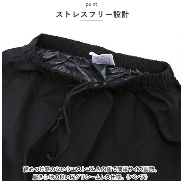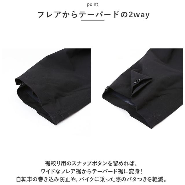 | 商品説明 | ・1着持っていれば、雨の日の移動やアクティブシーンでで大活躍!着心地と機能性を兼ね備えたウェア「4WAYストレッチレイン」が新登場。 【4方向に伸縮!】 ・抜群の伸縮性で、ボディラインに心地よくフィット!動きやすさもばっちり◎ 【耐水・透湿機能付き】 ・はっ水加工を施し、裏面にはTPUラミネート加工済み。耐水圧は10,000mmH2O、透湿性は10,000mg/m2・24hrの全天候対応型。雨の日以外の作業やアウトドアでも! 【暗闇でも安心のリフレクター機能】 ・ジャケットの胸と背中部分、パンツの膝あたりにリフレクターを装備。暗闇でヘッドライトの光を反射し、視認性アップ! ・《ジャケット》 【手軽にスタイルチェンジ】 ・サッと被りやすい、調節紐付きの3D設計フード。フードを使わない時は、まとめてスナップボタンで留めるだけで収納OK。 【雨の侵入を防止】 ・ファスナー&スナップボタンの前仕立てで、雨をシャットアウト!背面のドローコード、袖口の面ファスナーでフィット感を調節。 【便利な大型ポケット】 ・左右には大きめサイズのファスナーポケットを配置。ポケット部分も雨からガードするつくり。 ・《パンツ》 【ストレスフリー設計】 ・締めつけ感のないウエストゴム&内紐で簡単サイズ調節。履き心地の良い尻グリシームレス仕様。 【フレアからテーパードの2way】 ・裾絞り用のスナップボタンを留めれば、ワイドなフレア裾からテーパード裾に変身!自転車の巻き込み防止や、バイクに乗った際のバタつきを軽減。 |