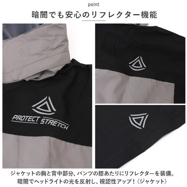 レインコート 上下 アウトドア 通販 レインスーツ メンズ レディース 自転車 バイク 反射 リフレクター ストレッチ 撥水 はっ水 耐水 透湿 レイングッズ 雨具 喜多 KITA 2930 プロテクトストレッチ レインウエア レインウェア アウトドアウェア