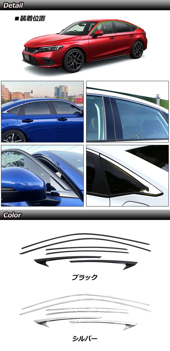 ウィンドウトリム ホンダ シビック FL系 サイドバイザー装着車不可 2021年09月〜 ブラック ステンレス製 入数:1セット(6個) AP-DG300-B-BK