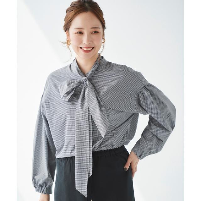 ギンガムチェックボウタイブラウス