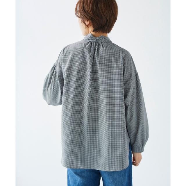 袖口のカフスが外側のみゴム仕様。たくし上げると、ボリュームスリーブが引き立ちます。