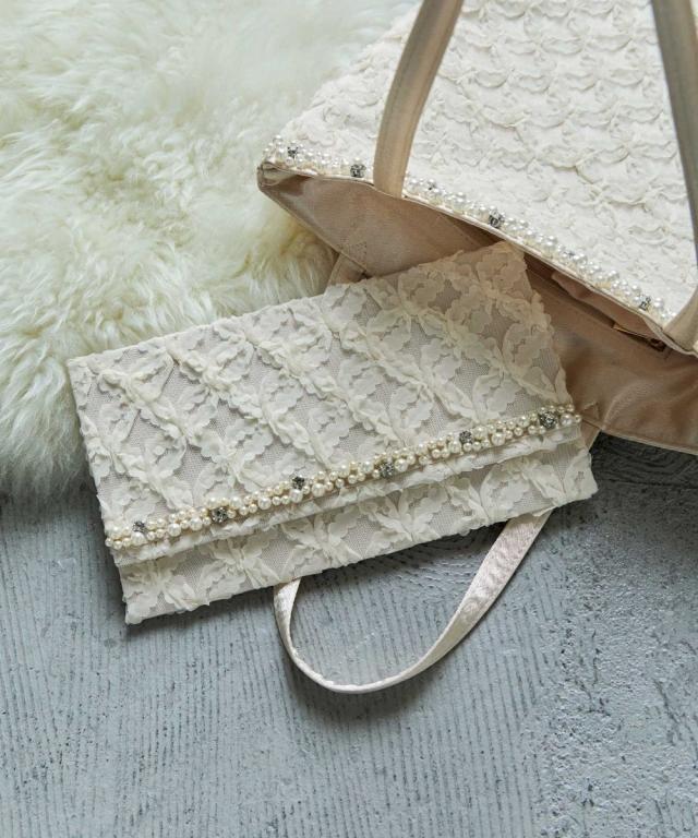 フラップ部分のパールとビジューのラインがアクセントに。