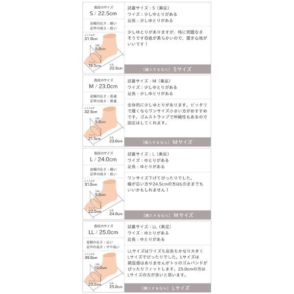 ・ゴムのバンドが足にフィットして適度なホールド感があって履きやすい