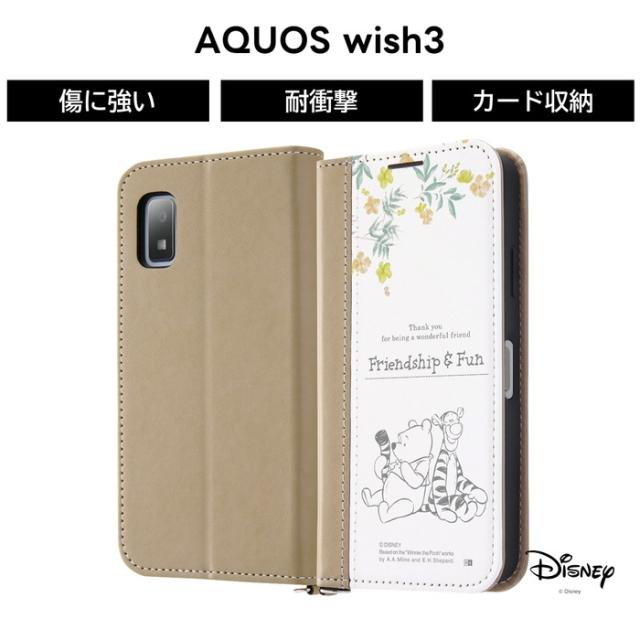 『くまのプーさん』のデザインが印刷されたバイカラーの手帳型AQUOS wish3 用ケース