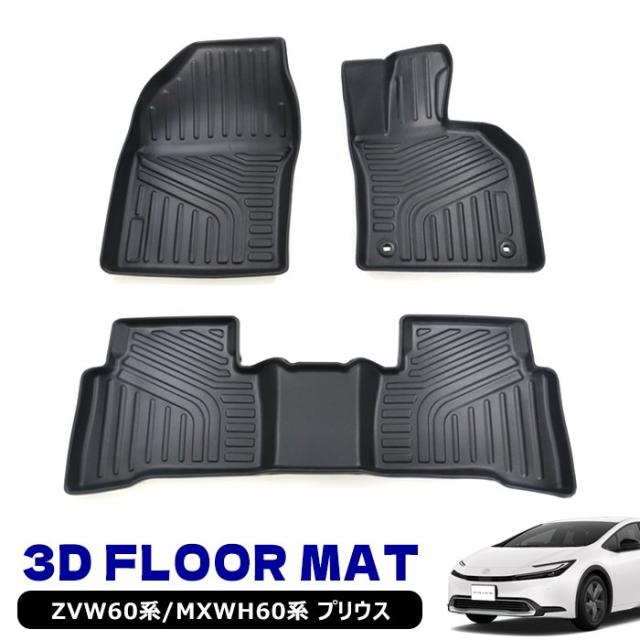 新型 60系 プリウス ZVW60 MXWH60 3D フロアマット 3点セット 新品 トヨタ 防水 防汚 立体 トレー TPO素材 ゴム ブラック 3P 現行 60プリウス フロント セカンドシート 前後 運転席 助手席 後部座席 PRIUS 内装 カスタムパーツ