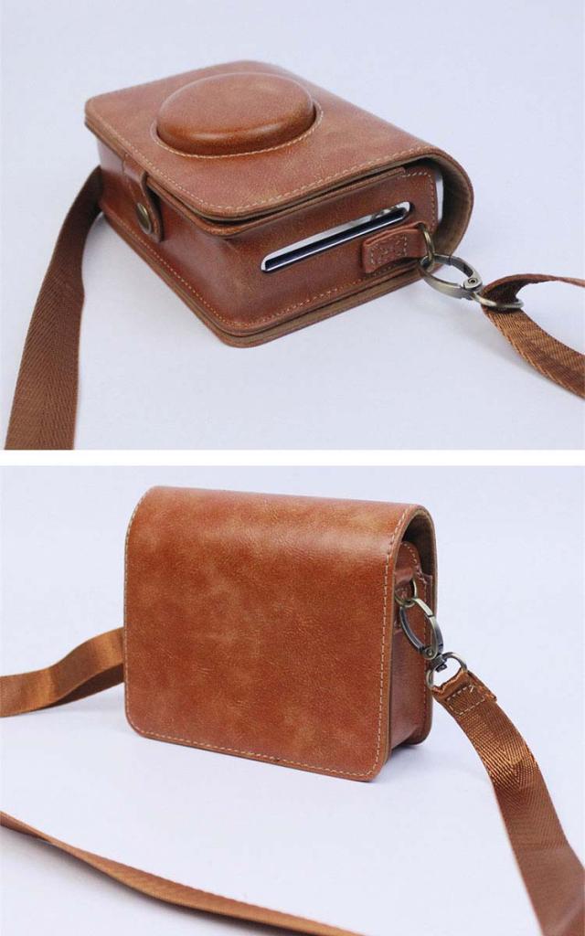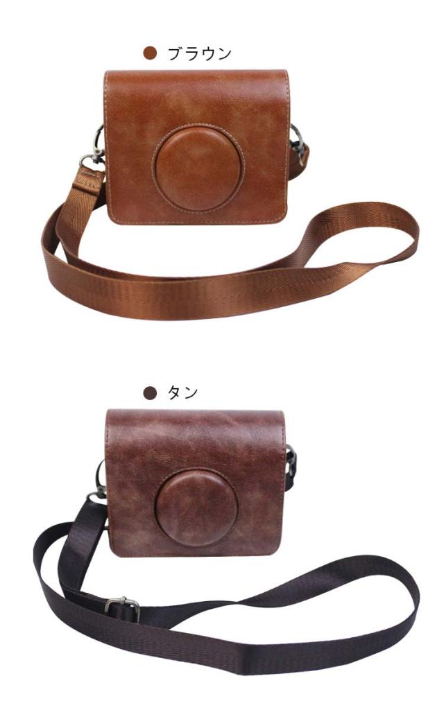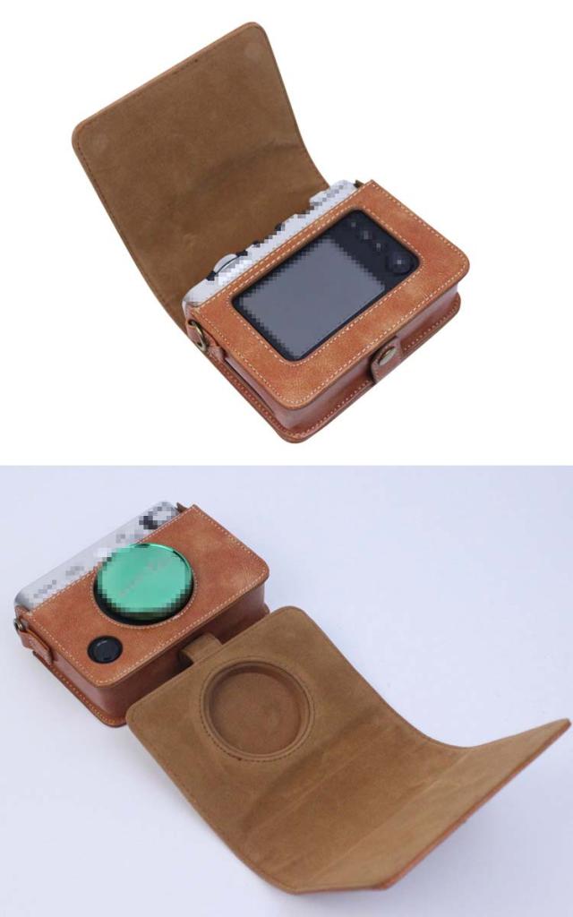 FUJIFILM instax mini Evo ケース カバー ショルダーストラップ付き PUレザー 肩掛け カメラバッグ レンズカバー付き チェキケース インスタックス ミニ エボ カメラポーチ おすすめ長さ調節可能 ショルダーベルト付き カメラ保護 衝撃吸収 ケース カバー