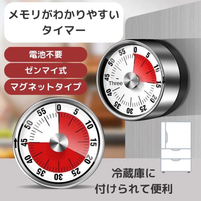 視覚タイマー マグネット 電池不要 ポマドーロ 時計 子供 知育 勉強タイマー 教育 タイマー 学習用 60分 黒 ブラック アラーム 時間管理 Luce brillare