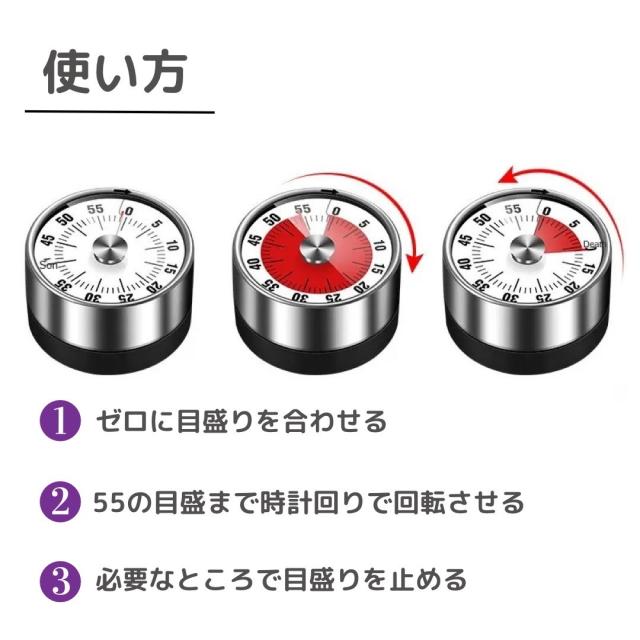 ・ダイヤルを時計回りに回して時間を調整します。タイマーをオフにするには、タイマーをゼロに戻すだけです