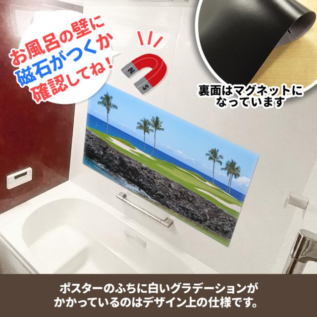 お風呂で使えるマグネット製のポスターです。 ■商品サイズ:約1100×570mm ※本製品はマグネットを使用しています。タイルや木製等、磁石がつかない壁面にはご使用いただけませんので、ご使用になる場所に磁石がつくことをご購入前にご確認ください。 |