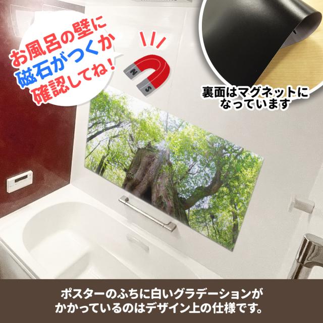 お風呂で使えるマグネット製のポスターです。 ■商品サイズ:約1100×570mm ※本製品はマグネットを使用しています。タイルや木製等、磁石がつかない壁面にはご使用いただけませんので、ご使用になる場所に磁石がつくことをご購入前にご確認ください。 |
