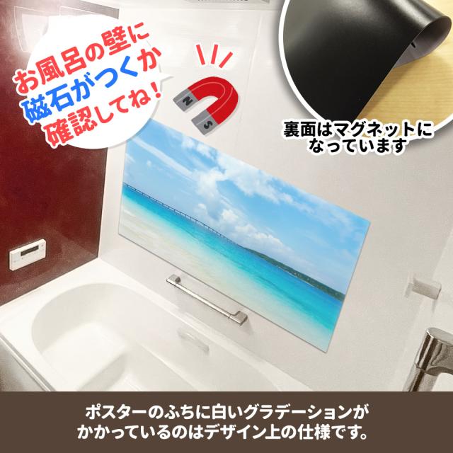お風呂で使えるマグネット製のポスターです。 ■商品サイズ:約1100×570mm ※本製品はマグネットを使用しています。タイルや木製等、磁石がつかない壁面にはご使用いただけませんので、ご使用になる場所に磁石がつくことをご購入前にご確認ください。 |