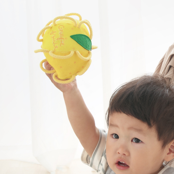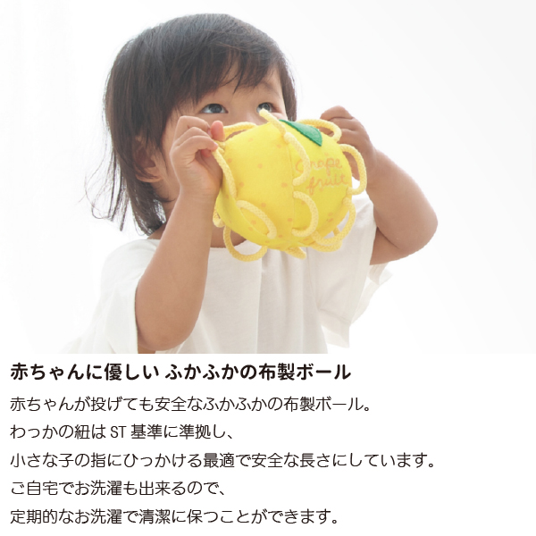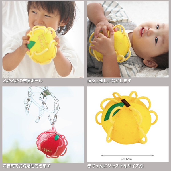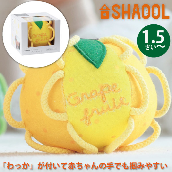 SHAOOL シャオール わっかボール グレープフルーツ 赤ちゃんが掴みやすい布製ガラガラ 出産祝い ハーフバースデイのプレゼントに人気