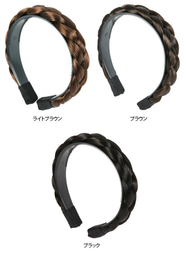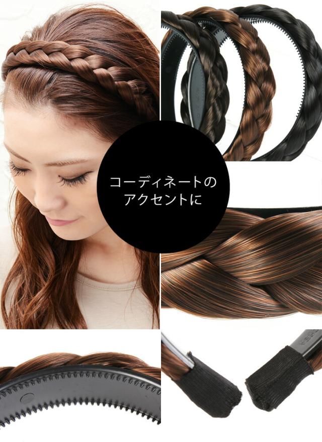 カチューシャ 三つ編み 3つ編み パーツ ミディアム ヘアバンド みつあみ ヘアアクセサリー 髪留め 前髪 ヘアアレンジ ヘッドアクセ ウィッグ ナチュラル 大人 幅広 黒髪 茶髪 ブラック ダークブラウン