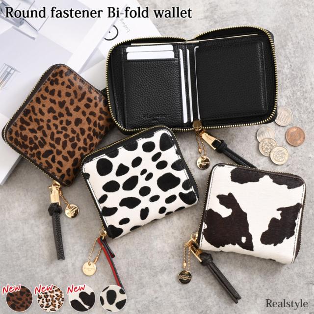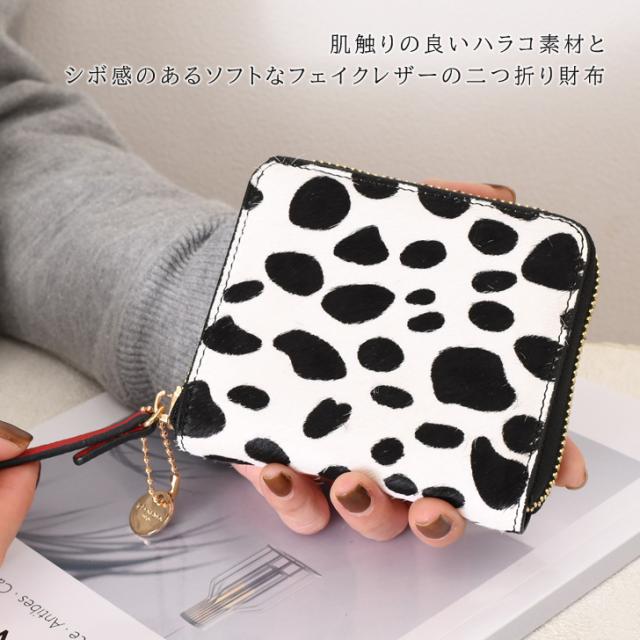 新作 二つ折り財布 ラウンドファスナー レディース ミニ 本革 ハラコ カウレザー 牛革 小銭入れ プレゼント ギフト お札が折れない お札を折らない