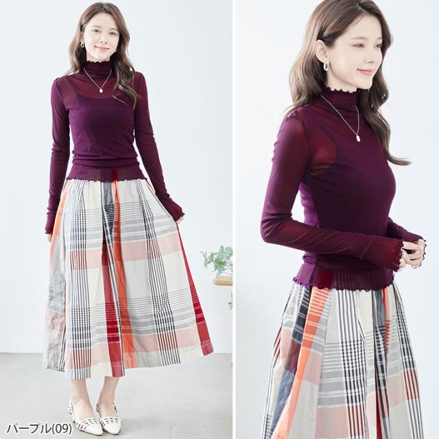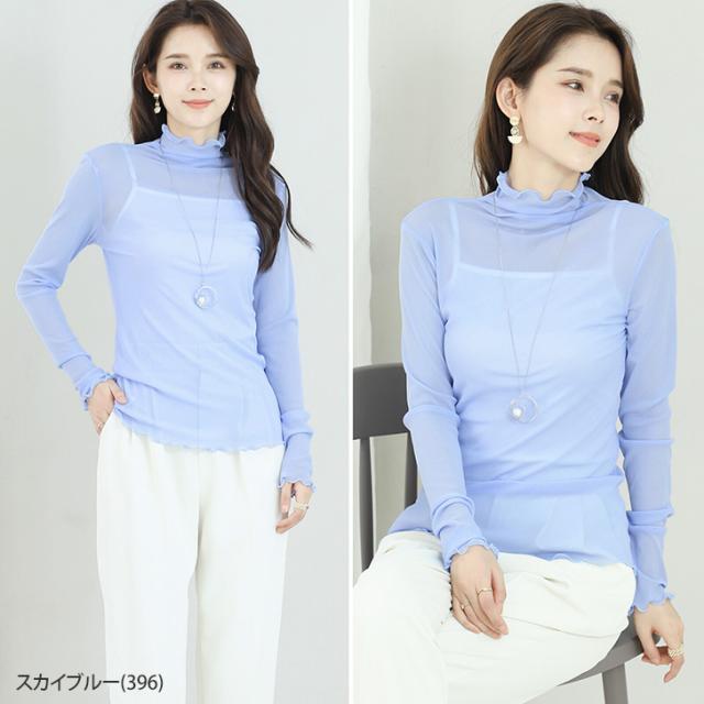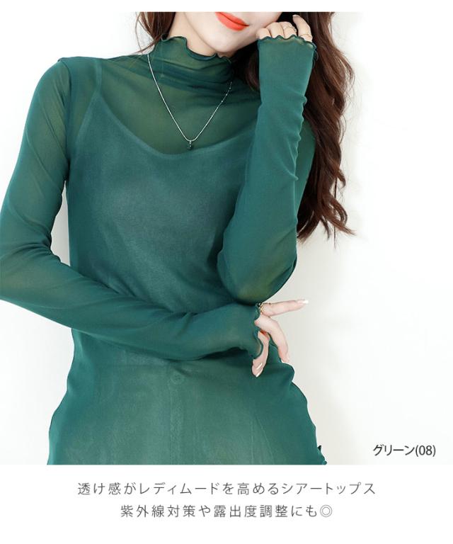 シアートップス メロウトップス ハイネック 新作 透け カットソー レディース シアー トップス インナー 長袖 シースルー メロウ メロー チュール 無地 重ね着 UVケア 上品 素肌隠し セカンドスキン