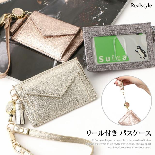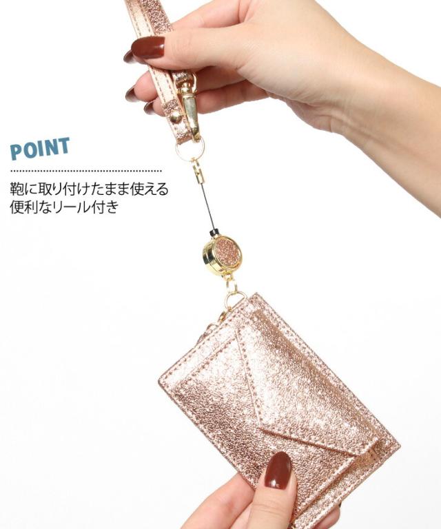 レター型 リール付き パスケース レディース 定期入れ カードケース カード入れ icカード IDカードホルダー コインケース 小銭入れ 財布 フラグメントケース 極小財布 通勤 通学 かわいい コンパクト