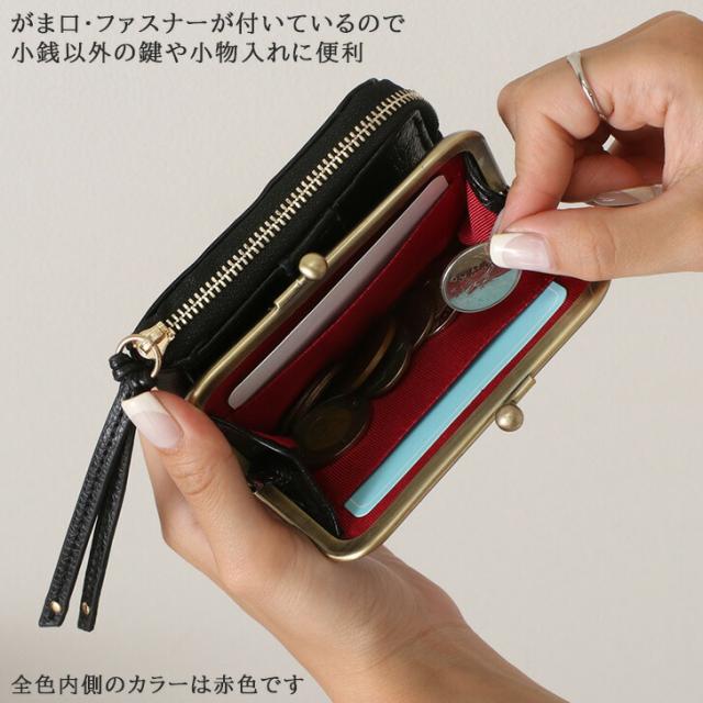 ■仕様:【外側】がま口ポケット×1、ファスナーポケット×1、カードポケット×1 【内側】札入れ×1、カードポケット×9、Dカン×1、キーリング×1、キーフック×3