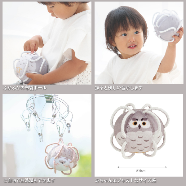 SHAOOL シャオール わっかボール ミニ フクロウ 赤ちゃんが掴みやすい布製ガラガラ 出産祝い ハーフバースデイのプレゼントに人気