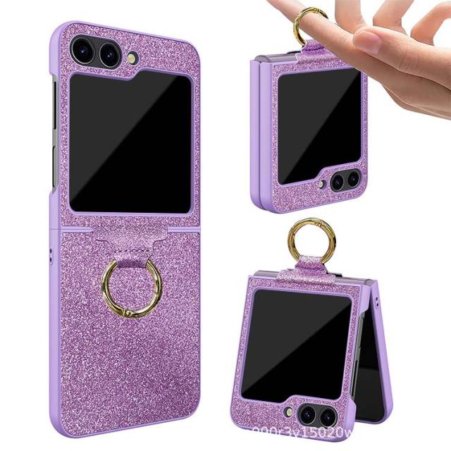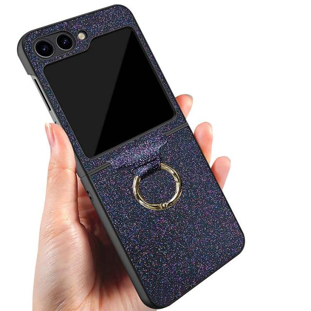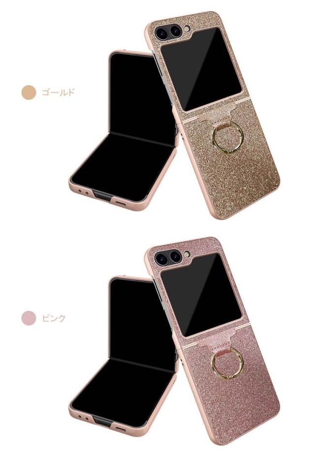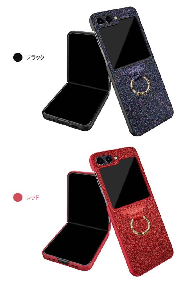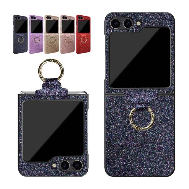 Galaxy Z Flip5 ケース / カバー 折りたたみ型 一体型リング付き レザー調 ケース Samsung サムスン ギャラクシー Z フリップ5 アンドロイド かわいい キラキラ おしゃれ スマートフォン/スマホケース/カバー ストラップホール付き おすすめ