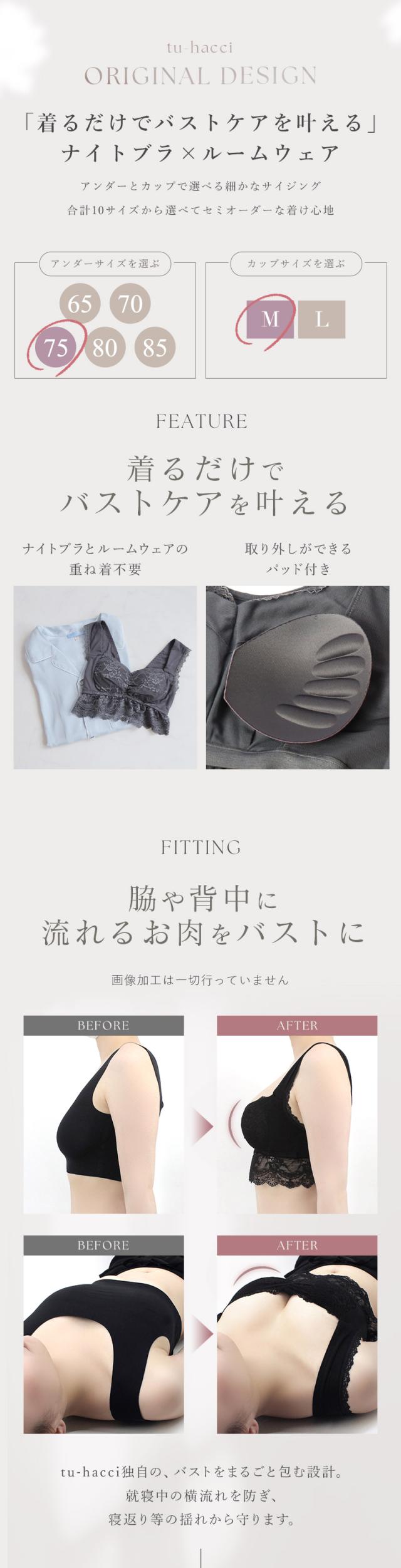 - ナイトブラ一体型なのでズボラ女子には最高でした。 アンダーきつめが好きなe65、身長175?あるので65Lにしました! ピッタリでした〜!下はMでちょうどよい。 着心地もいいです!!大満足〜! 洗い替...